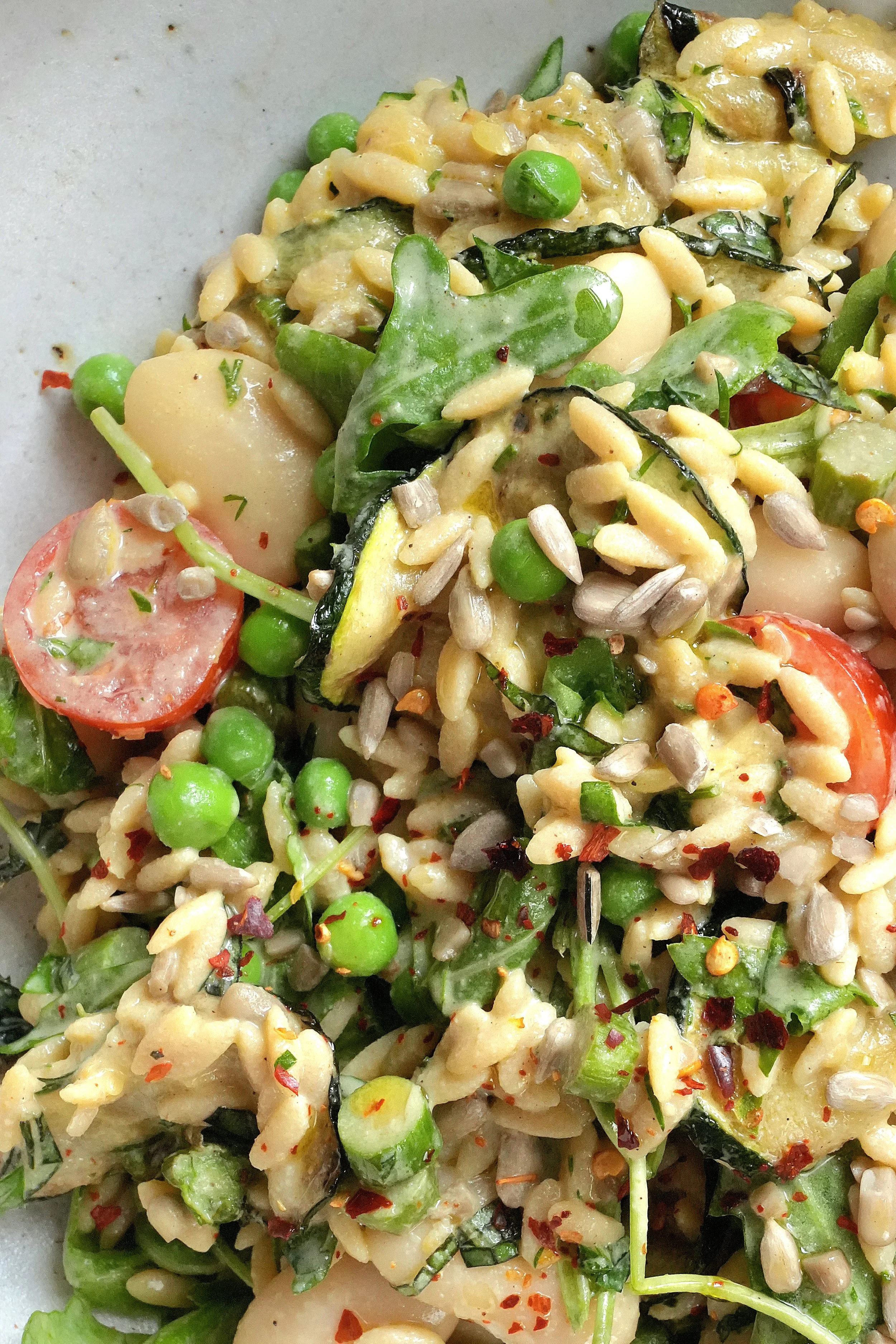 Herby Orzo & Courgette Salad with a Tahini Dressing (High-Protein, Vegan)